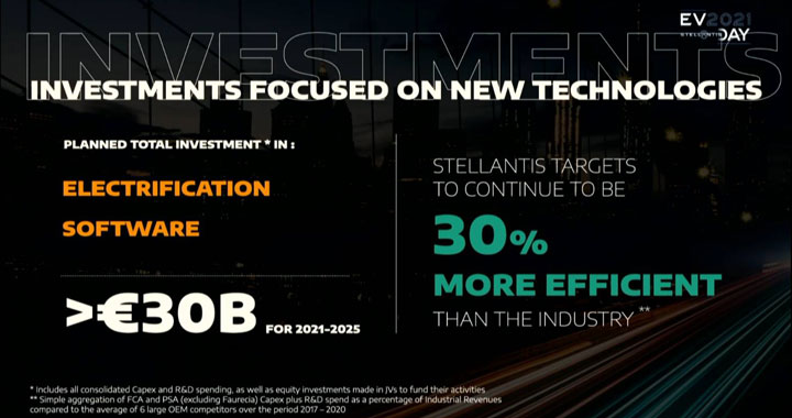 Stellantis 集团总计在 2025 年前将投资超过 300 亿欧元迈向电动化,并表示集团相关的投资效益会比业界对手高出 30%。