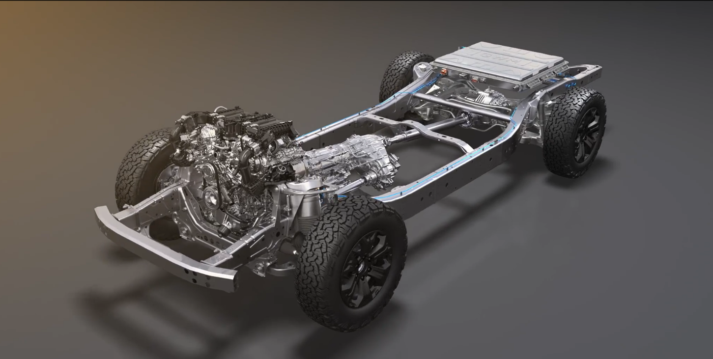 在此之前先让我们先简单了解一下越野超级混动架构Hi4-T的“顶配五件套”。3.0T双涡轮增压V6发动机,峰值功率260kW,峰值扭矩560Nm,热效率38%;9HAT混动专用变速箱,速比5.288,最高传动效率达97%;超薄硅钢片永磁同步电机,随时响应动力输出,爆发力更强;双隔热大容量电池包,外壳耐高温,内加入了隔热层材料,杜绝热失控;120MM大行程空气悬架,前悬232MM,后悬225MM。