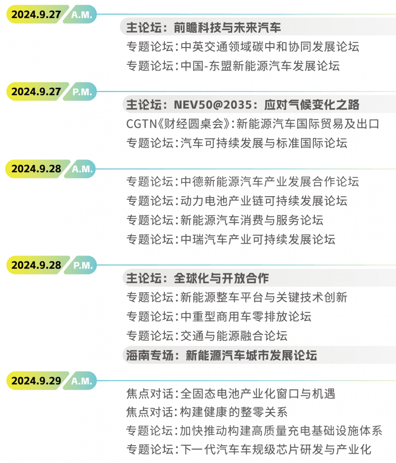 3场高规格主论坛分别聚焦行业发展中的3个热点问题:如何加速低碳转型?如何加强全球合作?如何实现创新驱动?大会将邀请全球新能源汽车领域政产学研高层分享他们对于这3个热点问题的理解、实践和行动计划,以及政策如何支持支撑。