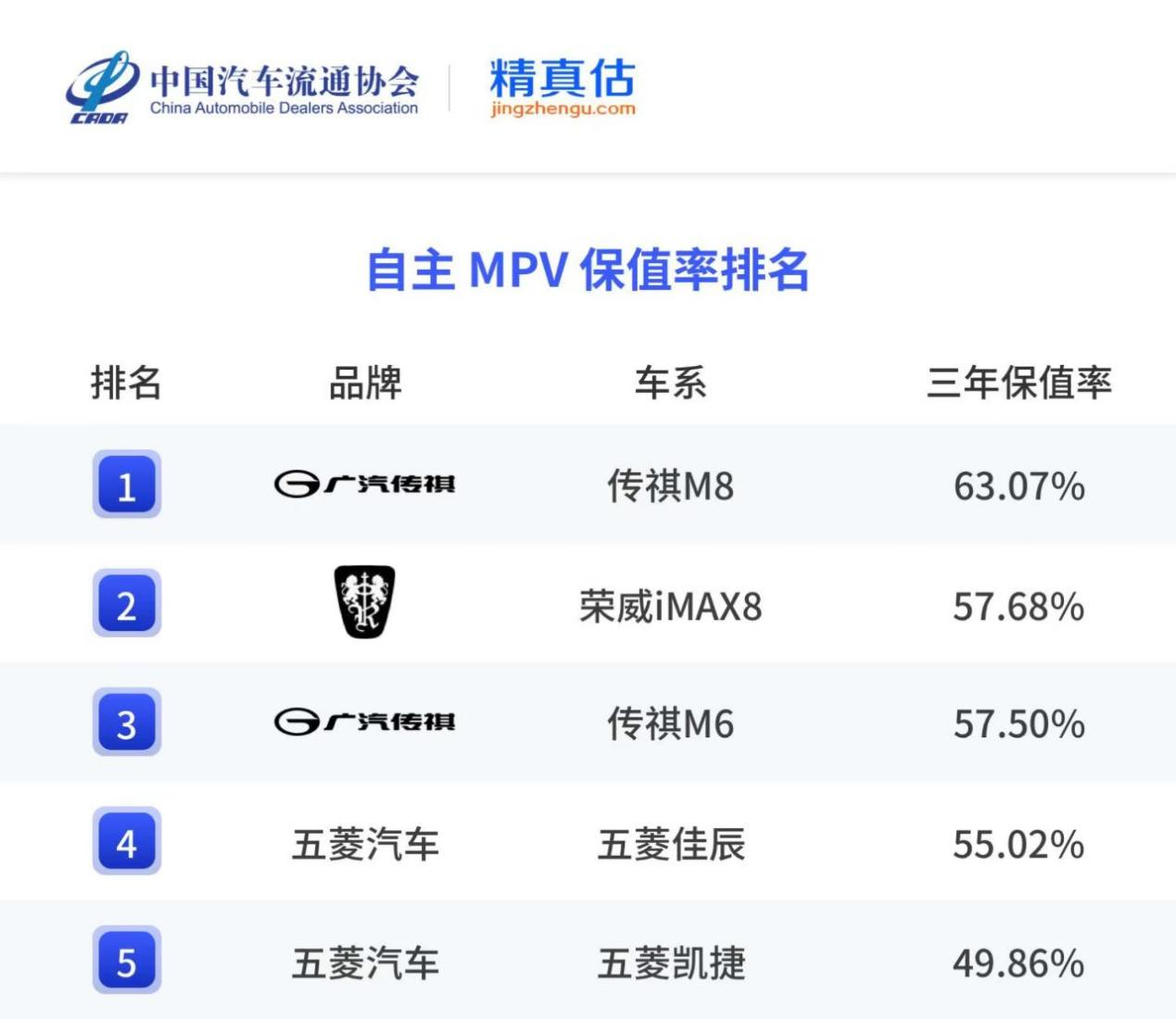 光卖得好不够,还得 “开几年依然值钱”。这就看第二项硬指标:保值率。中国汽车流通协会发布的权威数据里,传祺M8的三年保值率高达63.7%,站在了同级车的顶端。高保值率意味着什么?意味着你开几年想换车时,损失更小;更深层的是,它代表了市场对这款车产品力、口碑和可靠性的长期认可。